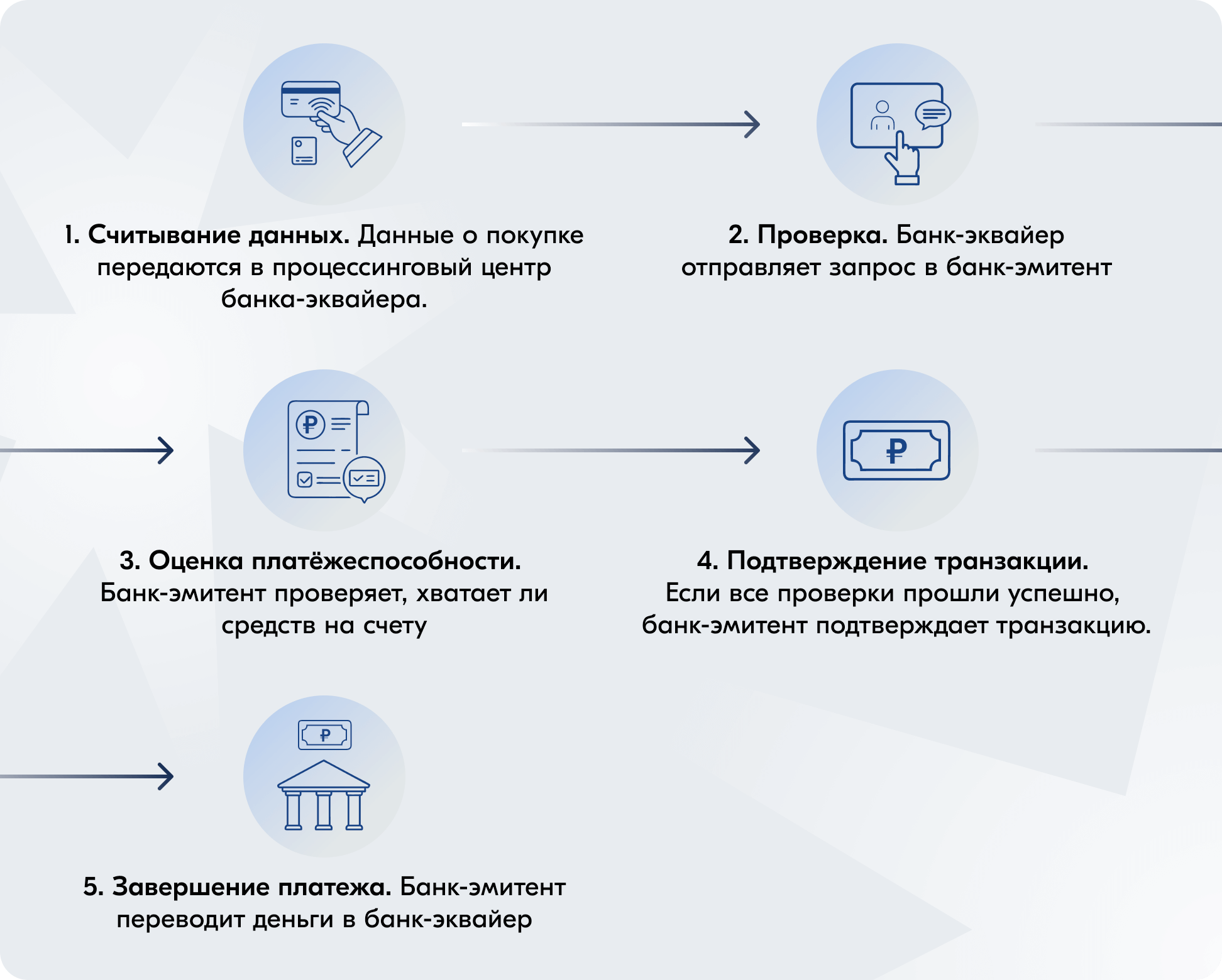 Однако на самом деле эквайринговая операция — это сложный процесс из пяти этапов: